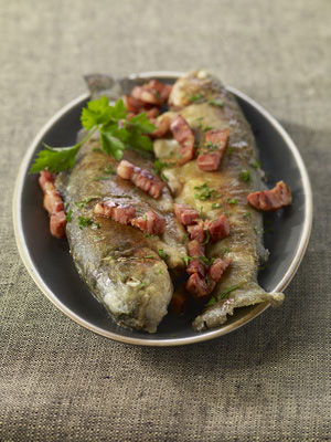 Dans les vallées du Cernon, de la Dourbie ou de la Sorgues, savourez la chair saumonée et délicate de truite Arc-en-ciel : aux amandes, façon meunière ou tout simplement farinée et pôelée avec du lard et du persil, c'est un véritable délice.